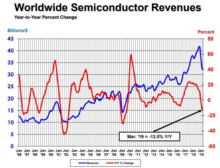 Les ventes mondiales de semi-conducteurs se sont élevées à 96,8 milliards de dollars au premier trimestre 2019, en baisse de 15,5% par rapport au trimestre précédent et de 13% par rapport au premier trimestre 2018, selon les statisiques publiées fin avril par le WSTS, l’organisme mondial en charge des statistiques mondiales sur les semi-conducteurs, et relayées par la SIA, l’association américaine de l’industrie des semi-conducteurs. Les ventes mondiales du mois de mars 2019 se sont établies à 32,3 milliards de dollars, en baisse de 1,8% par rapport au total du mois précédent et en baisse de 13% par rapport aux ventes de février 2018. Les ventes mensuelles, compilées par le WSTS, représentent un moyenne mobile sur trois mois.