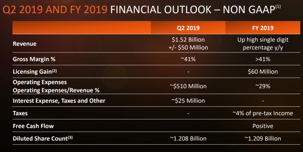 AMD poursuit également la réduction de sa dette (-165M$ ce trimestre), qui s’élève désormais à 1,363 milliard de dollars. Le fabricant s’attend à un rebond au deuxième trimestre, avec un chiffre d’affaires d’environ 1,52Md$, et maintient le pronostic d’une croissance de 5% à 10% pour l’ensemble de l’année fiscale 2019.