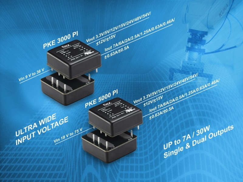 Flex Power Modules complète sa gamme PKE de modules de conversion DC-DC destinés au secteur industriel, aux télécoms et aux équipements de test. Les PKE3000 et PKE5000 constituent des solutions de grande robustesse dans un facteur de forme de 1×1 pouce standard. Les représentants de la première série sont conçus pour fonctionner à partir d’une tension nominale de 12V ou 24V (9 à 36V), tandis que les modules de la seconde série acceptent une tension nominale de 24V ou 48V (18 à 75V).