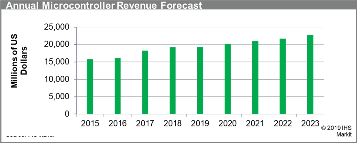 D’après IHS Markit, il faudra attendre 2020 pour voir les ventes de microcontrôleurs repartir à la hausse.