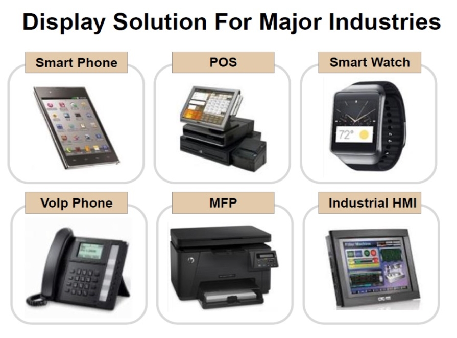 Une grande variété de taille d’écran est disponible: de 0,96″ à 12,1″ avec des résolutions adaptées telles que le QVGA, le WVGA, le WSVGA, le FWVGA, le WXGA, le HD, …