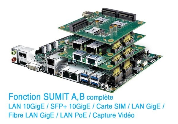 • Extension : 2 Mini PCIe, 1 PCIe, fonction complète SUMIT A, B