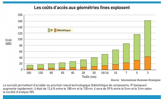 Les trois derniers défricheurs de la fabrication microélectronique, Intel, TSMC et Samsung, poursuivent la miniaturisation des géométries de production de circuits intégrés ; ils se distinguent toutefois par des calendriers, des technologies et des approches différentes.