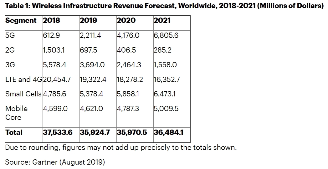 En 2020, les revenus mondiaux de d’infrastructures de réseau sans fil 5G atteindraient 4,2 milliards de dollars, soit une augmentation de 89% par rapport au chiffre d’affaires de 2,2 milliards de dollars réalisé en 2019, selon Gartner. Ils atteindraient 6,8 milliards de dollars en 2021, selon le cabinet d’études. En outre, Gartner prévoit que les investissements dans les infrastructures de réseau 5G New Radio (NR représenteront 6% des revenus totaux des infrastructures sans fil des fournisseurs de services de communication en 2019, et que ce chiffre atteindra 12% en 2020.