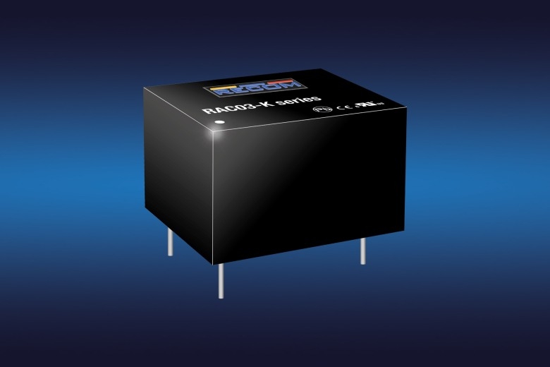 Les convertisseurs de la série RAC03-K de Recom, en petit boîtier de 28,5×23,5×17,9 mm, ne requièrent aucun composant additionnel pour garantir la conformité aux normes CEM.