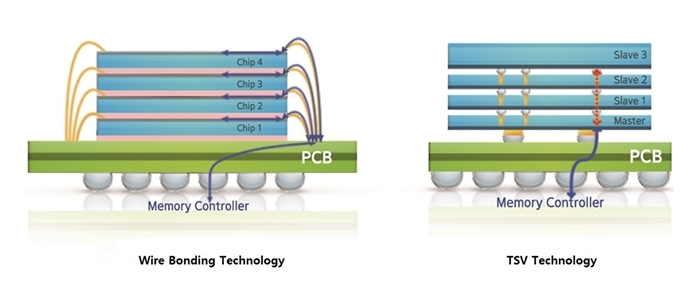 Samsung Electronics a développé une technologie de liaisons traversantes sur silicium (TSV) à douze couches, une première dans l’industrie selon le sud-coréen. Cette technologie permet par exemple d’empiler douze puces de mémoire Dram dans un seul boîtier au moyen de plus de 60.000 trous TSV, tout en conservant la même épaisseur totale, 720µm, que les actuelles mémoires HBM2 à huit couches. Samsung prévoit ainsi de produire bientôt des mémoires HBM de 24Go, soit douze puces de 16Gbits empilées.