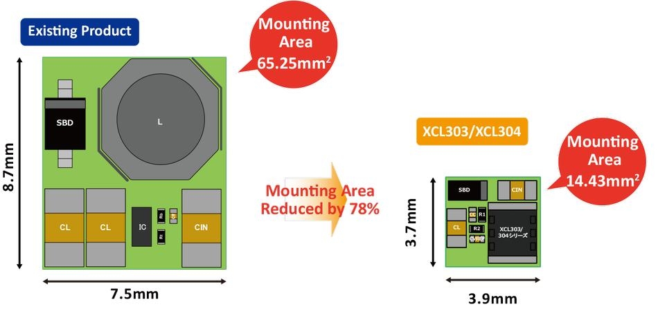 Les XCL303 et XCL304 permettront de réduire jusqu’à 78% la surface occupée sur la carte par la solution complète.