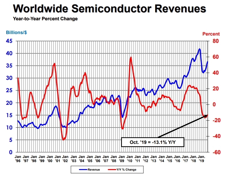 “Alors que le marché mondial des semi-conducteurs a chuté en 2019 par rapport aux ventes record enregistrées en 2018, la tendance récente est plus positive. Les ventes ont augmenté d’un mois à l’autre en octobre, pour le quatrième mois consécutif”, a déclaré John Neuffer, président de la SIA.