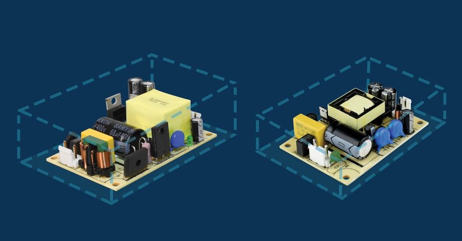 Les alimentations sans boîtier des séries VOF-xxC délivrent 15W, 30W, 40W, 45W, 60W ou 65W. Leur consommation à vide n’excède pas 500 mW.