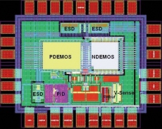 Le convertisseur d’Infineon fonctionne en mode PFM au démarrage et en mode veille, et en mode PWM en mode actif. La précision en sortie est assurée par une rétroaction numérique mettant en œuvre un convertisseur analogique-numérique 4 bits 12 Méch./s. La limitation de la tension au niveau des transistors de puissance (ici des modèles MOS à drain étendu) est assurée non pas par des régulateurs de tension auxiliaires, mais par des comparateurs de tension. La rapidité de ces derniers, combinée à la capacitance élevée des transistors DeMOS, assure la stabilité en sortie.