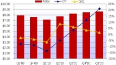 également que c’est la troisième fois de suite que la croissance trimestrielle en valeur est supérieure à celle en volume, traduisant le fait que le prix moyen des afficheurs de téléphones portables n’a cessé d’augmenter au cours de la période considérée.