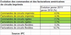 En janvier dernier, les fabricants nord-américains de circuits imprimés ont facturé 4,3 % de plus qu’en janvier 2010. Mais ils ont reçu 6,5 % de commandes en moins .