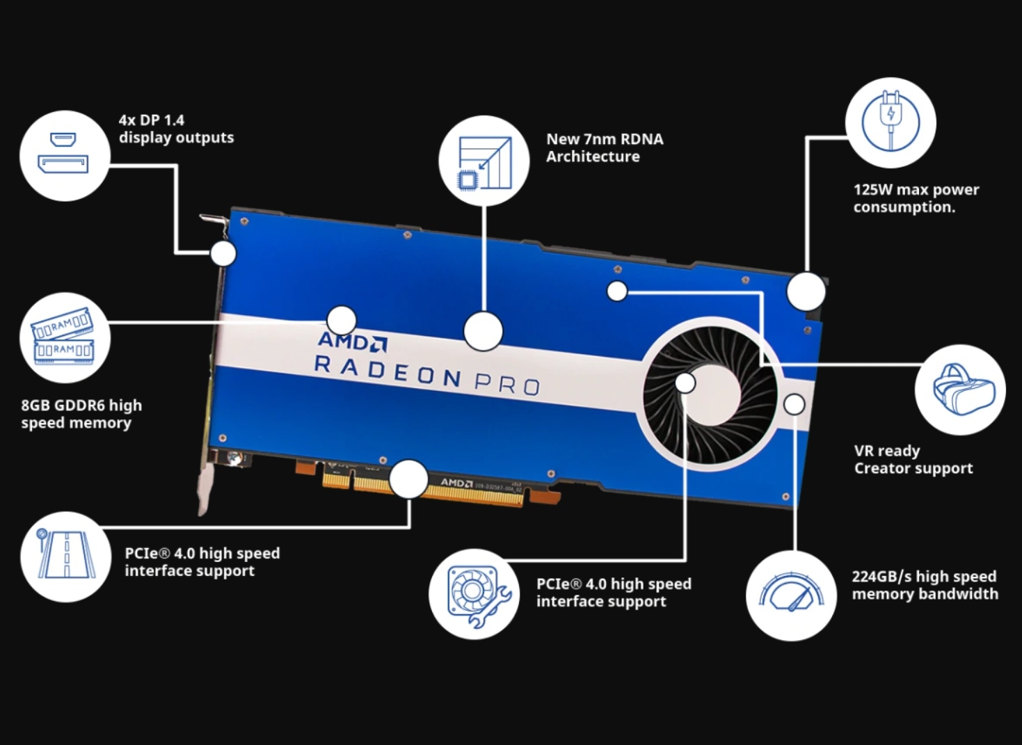 Les derniers processeurs graphiques Radeon Pro W5500 de l’américain ciblent avant tout les professionnels du graphisme.