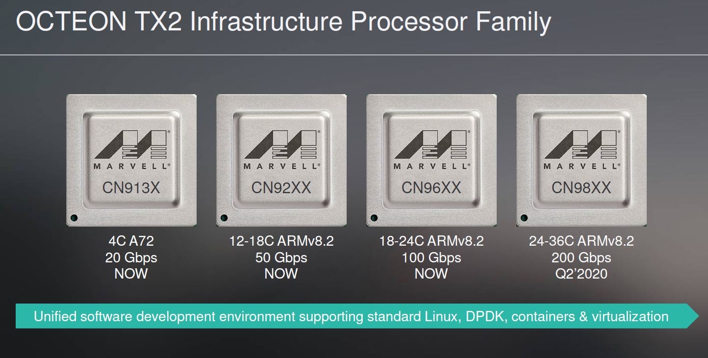 Le californien multiplie par 2,5 les performances offertes par ses processeurs pour infrastructures réseaux, qui embarquent désormais jusqu’à 36 coeurs ARM v8-A, des coprocesseurs Nitrox V et des accélérateurs dédiés.