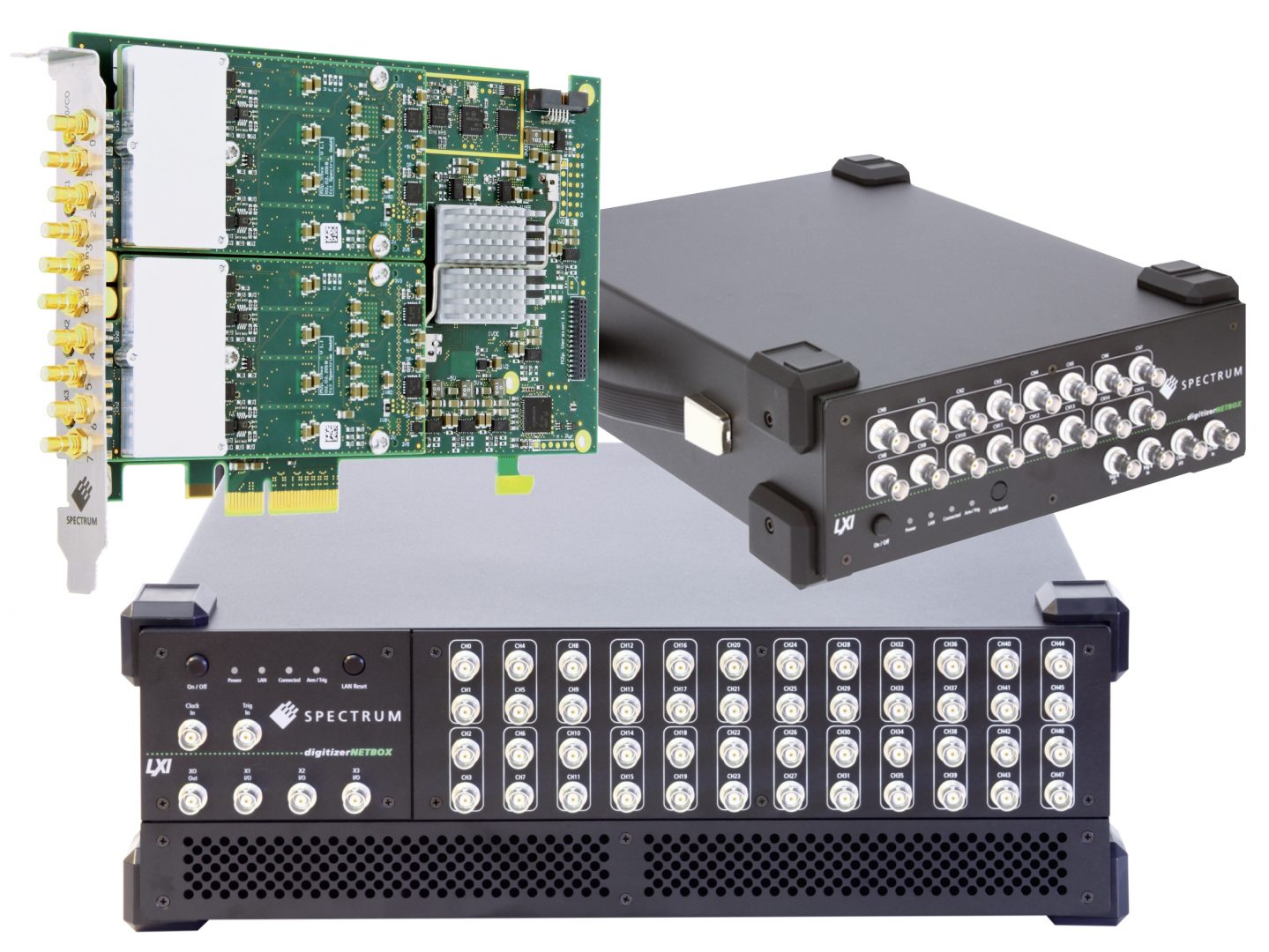 Deux formats sont disponibles : des cartes PCI Express (PCIe) pour les quatre modèles de la série M2p.591x – 2, 4 ou 8 voies, soit jusqu’à 128 voies en synchronisant 16 cartes ensemble – et des instruments LXI-Ethernet pour les modèles DN2.591 (4, 8 ou 16 voies) et DN6.591 (24, 32, 40 ou 48 voies) de la série digitizerNetbox.