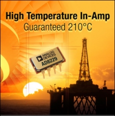 Offrant un faible bruit (1 nV par racine de hertz en entrée), l’AD8229 est en effet spécifié dans la gamme de température -40 °C à 210 °C (dans ce dernier cas les performances sont garanties pour une durée de 1000 h).