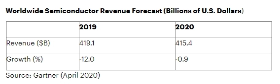 En raison de l’impact du Coronavirus sur l’offre et la demande de semi-conducteurs, le chiffre d’affaires mondial des semi-conducteurs devrait diminuer de 0,9% en 2020, selon Gartner. Il s’agit d’une baisse par rapport aux prévisions du trimestre précédent qui envisageait 12,5% de croissance cette année.