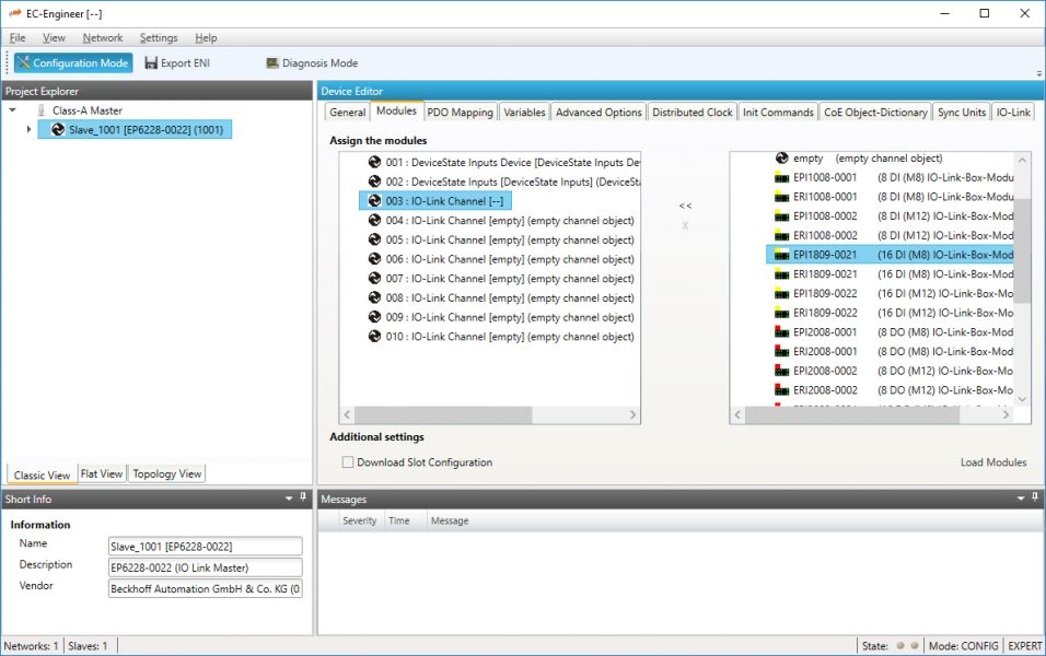 La société allemande propose la Stack Master EtherCAT EC-Master et une large gamme d’outils complémentaires, tels qu’EC-Engineer (voir photographie), pour la configuration et le diagnostic EtherCAT, ou EC-Simulator, pour simuler un réseau EtheCAT complet et faciliter ainsi le développement et le test des systèmes.