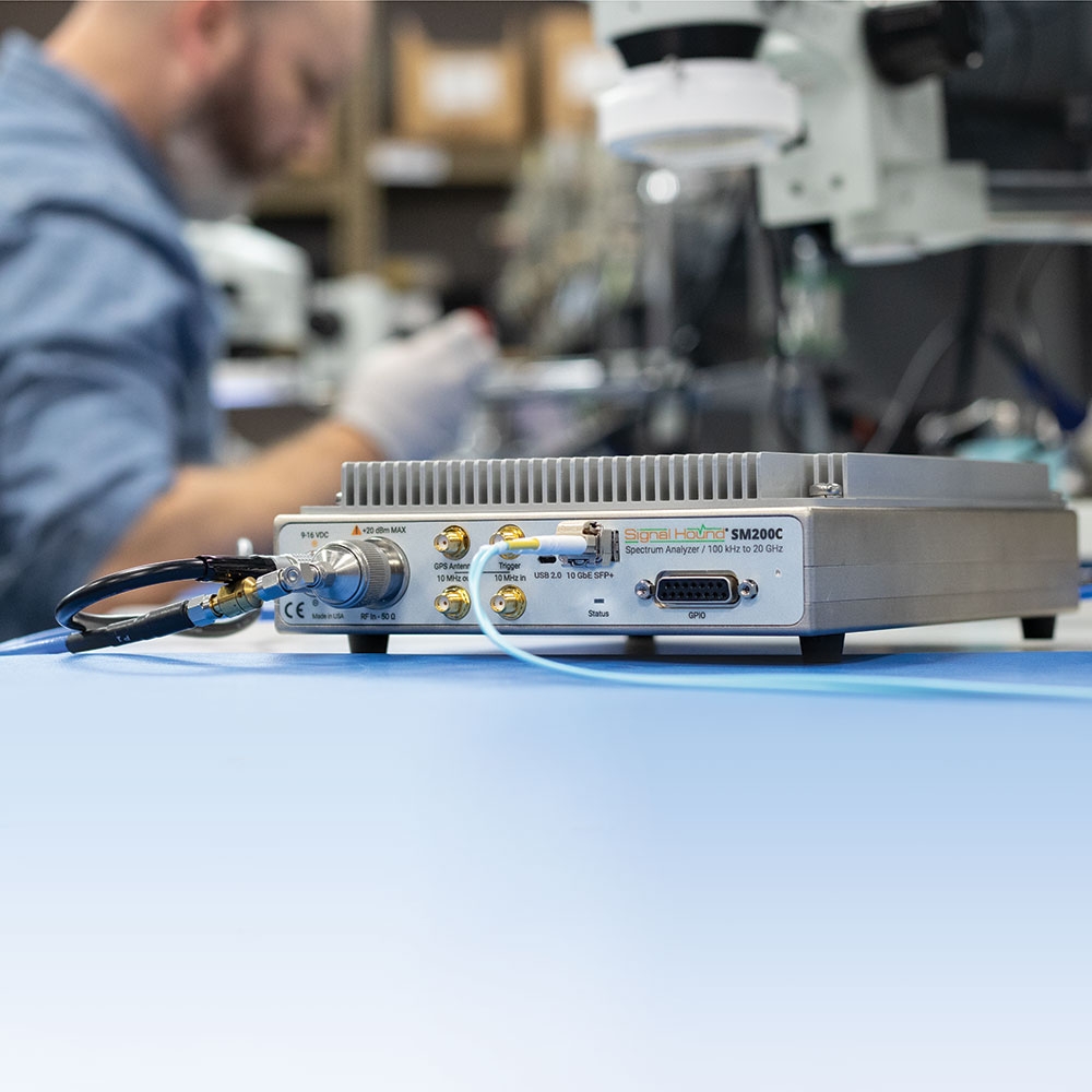 Dans la version SM200C, Signal Hound a ajouté un port SFP+ 10 Gigabit Ethernet permettant d’accroître significativement la distance entre analyseur et PC.