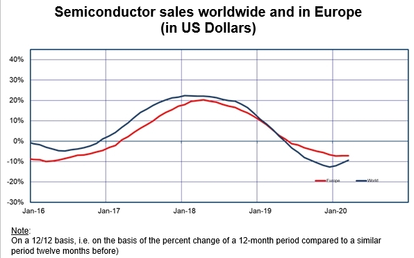Sur une base mondiale, les ventes de semi-conducteurs se sont élevées à 34,852 milliards de dollars en mars 2020, en hausse de 0,9% par rapport au mois précédent et de 6,9% par rapport au même mois en 2019. Les ventes totales au premier trimestre ont diminué de 3,6% par rapport au trimestre précédent.