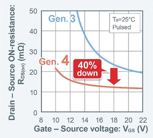 Le fabricant abaisse de 40 % la résistance à l’état passant et de 50 % les pertes en découpage de ses transistors Mosfet SiC pour l’automobile et l’industriel.