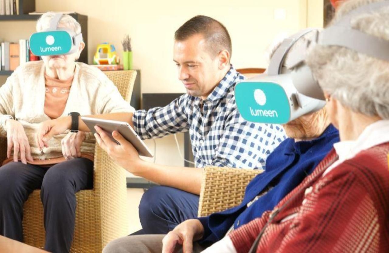 Le 2è prix est revenu à Lumeen, une solution thérapeutique non-médicamenteuse utilisant la réalité virtuelle pour les structures qui cherchent à améliorer les soins aux personnes âgées dépendantes ou en perte d’autonomie (Ehpas, hôpitaux gériatriques). Elle se compose d’une tablette numérique et de plusieurs casques de réalité virtuelle disposés dans une valise sur-mesure pour faciliter le rechargement et le transport.