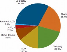 Il faut dire que le rétroéclairage à LED permet d’obtenir un meilleur contraste mais aussi de réduire la consommation du téléviseur ainsi que son épaisseur. La chute importante des prix des téléviseurs LCD dotés d’un rétroéclairage à LED a également favorisé cette technologie devenue abordable. En illustration, le camembert fourni par DisplaySearch indique la part de marché des principaux fabricants de LCD à rétroéclairage LED pour téléviseurs.