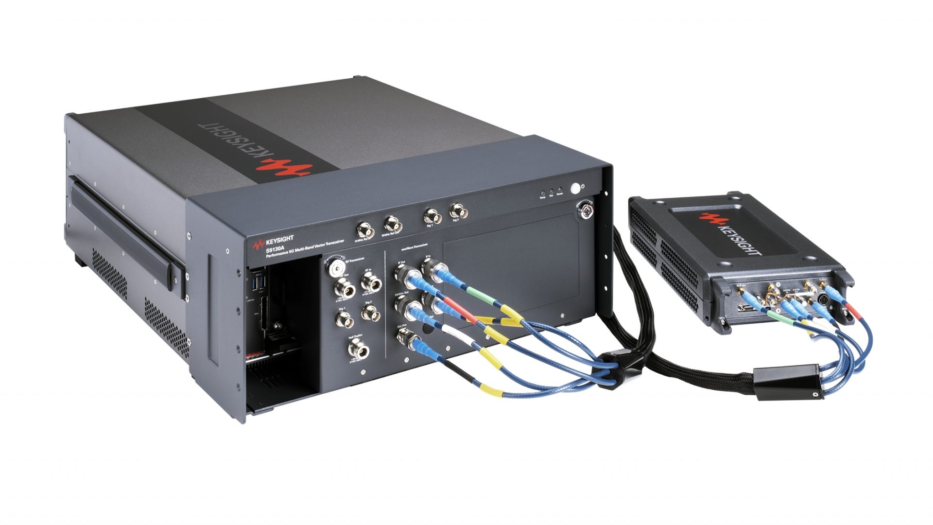 La nouvelle solution de test de gNodeB s’appuie sur le nouvel émetteur-récepteur vectoriel (VXT) multibandes 5G PXI Express S9130A, une unité d’interface commune (CIU) interne et la tête radio à distance (RRH) millimétrique, pour fournir des tests OTA (Over-The-Air) dans un format compact.