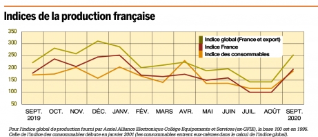 Légère reprise de l’activité en septembre avec une nette remontée de tous les indices. Seul le book to bill baisse fortement, ce qui tend à montrer que ces hausses sont bien fragiles. Selon le collège Équipements et Services d’Acsiel, les mois à venir s’annoncent difficiles, mais il y aura sûrement des opportunités à saisir à