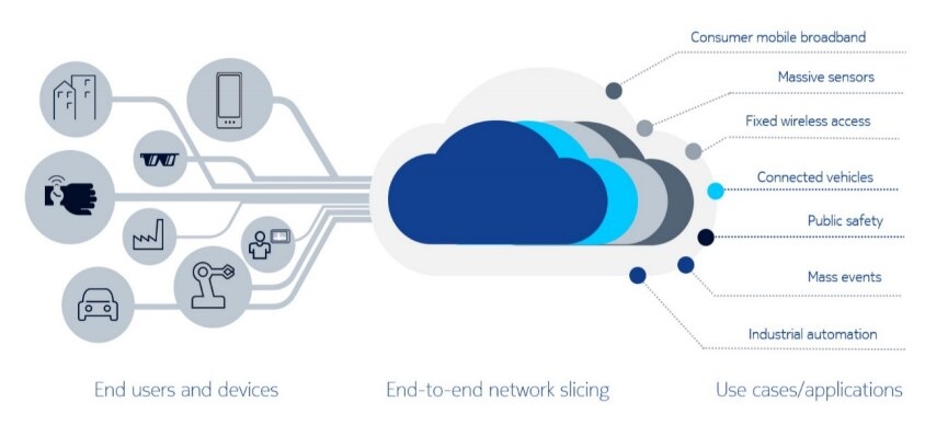 Par exemple, si un accident survient dans une rue bondée, l’opérateur de réseau peut dédier une tranche de réseau aux équipes de secours, leur permettant d’utiliser leur application radio et leur flotte de surveillance vidéo par drone, sur le même réseau physique utilisé par le grand public, sans se soucier de la congestion causée par les passants qui tenteraient de diffuser en direct l’événement sur les réseaux sociaux.