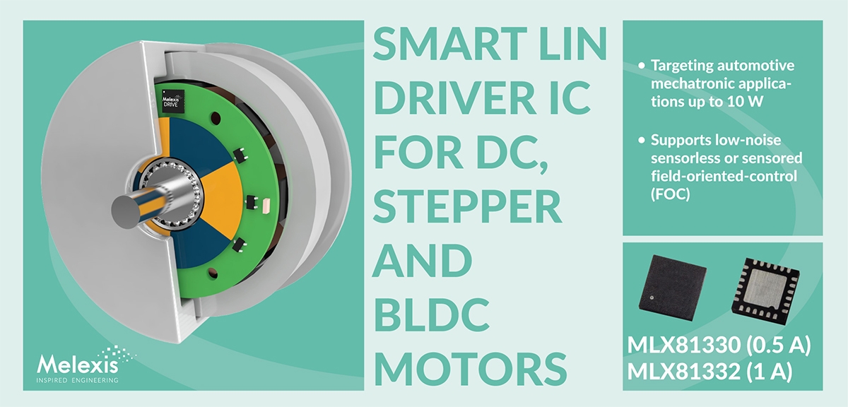 Melexis inaugure sa troisième génération de pilotes de moteurs LIN destinés aux petits moteurs automobiles jusqu’à une puissance de 10W. Fabriqués à partir d’un substrat SOI (silicium sur isolant), les MLX81330 (0,5A) et MLX81332 (1A) sont conformes aux spécifications LIN 2.x/SAE J2602 et ISO 17987-4.