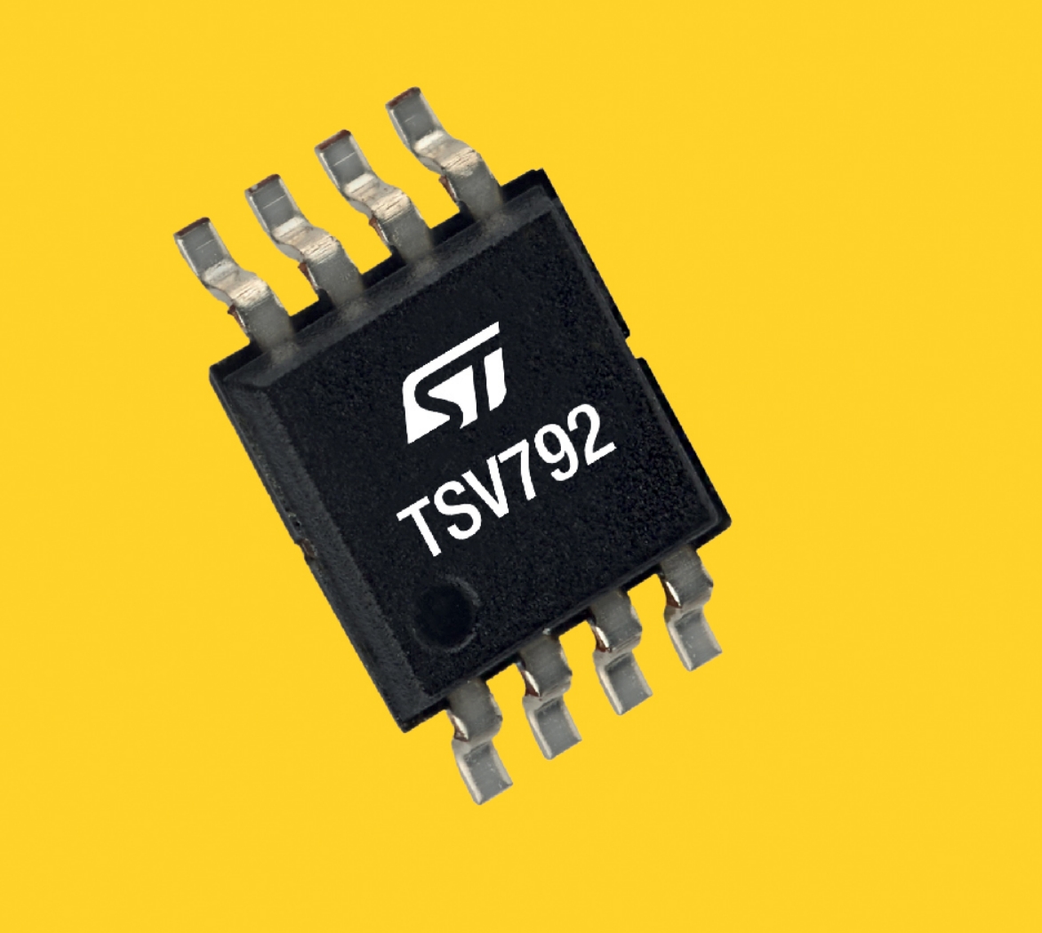 Rapidité et précision sont les qualités mises en avant par STMicroelectronics pour le TSV792, un double amplificateur opérationnel caractérisé par un produit gain-bande passante de 50MHz, une vitesse de balayage de 30V/µs et un bruit de tension en entrée de 6,5nV/√(Hz). Il convient par exemple au traitement du signal des photodiodes embarquées dans les détecteurs de fumée et à la mesure de courant côté bas dans les commandes de moteurs.