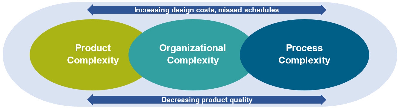 Figure 2 : La complexité des produits, de l’organisation et des processus entraîne une augmentation des coûts, une baisse de la qualité de la conception et des retards.