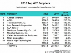 Pour 2011, VLSI Research prévoit une progression de 20 %, à 35 milliards de dollars, du marché mondial des équipements de production de semi-conducteurs.