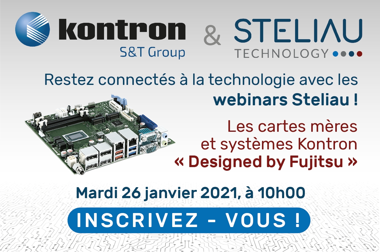 Distribuant la ligne de produits Kontron « Designed by Fujitsu » depuis peu, Steliau Technology souhaite mettre en avant cette offre à travers un webinar de 45 minutes, le mardi 26 janvier prochain, afin de proposer une vue d’ensemble des différentes solutions disponibles sur le marché à ce jour.