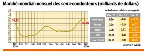 BILAN 2020 EN SEMI-CONDUCTEURS : VENTES MONDIALES EN HAUSSE, MAIS DÉCLIN EN EUROPE