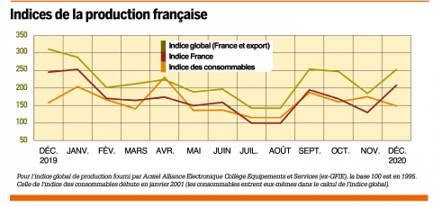 Les indices de la production traduisent une résilience des entreprises face à la crise sanitaire, estime le collège Équipements et Services d’Acsiel. Les indices consommables et export sont au plus bas, mais l’indice machines est remonté en décembre. Le book-to-bill a baissé à 1,134. Enfin, l’indice de confiance est remonté lentement mais est resté historiquement