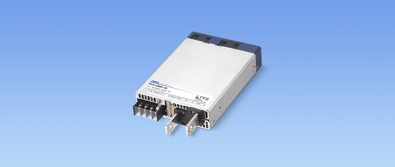 Cette alimentation accepte une entrée comprise entre 85VAC et 264VAC et peut opérer à tension ou intensité constante, sous contrôle numérique ou analogique, avec des sorties allant de 5V à 48V (et même 57,6V pour répondre à certaines applications Power over Ethernet). En plus de la sortie principale figure une sortie auxiliaire ajustable entre 4,7V et 12,6V. La PCA1500F comprend également une correction de facteur de puissance active et diverses protections contre les écarts de tension, de courant et de température.