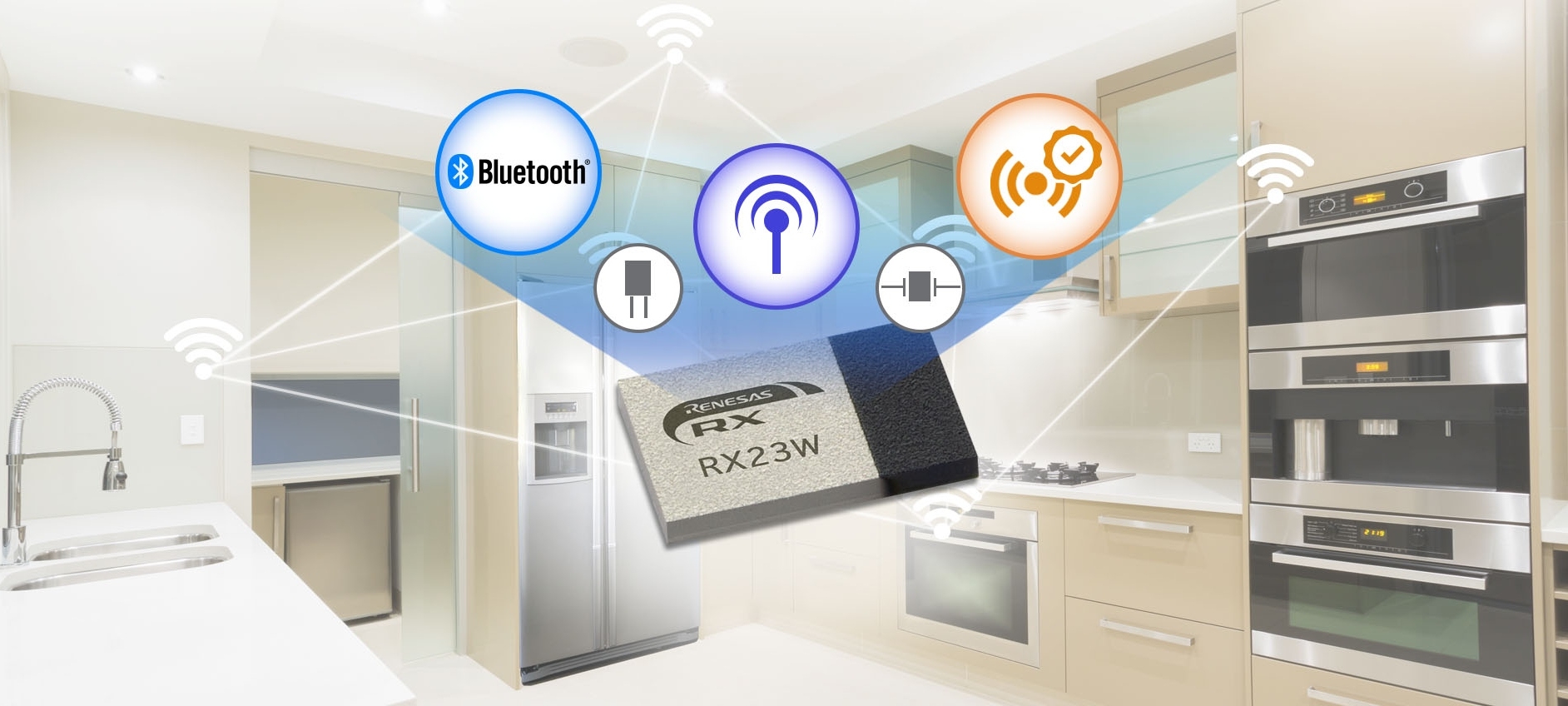 Renesas concentre un microcontrôleur 32 bits, un frontal Bluetooth et les passifs nécessaires dans un boîtier LGA miniature prêt à l’emploi.