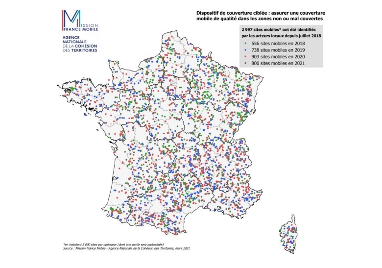 Dans ce cadre, le gouvernement a déjà pris, depuis l’été 2018, dix arrêtés identifiant 2658 sites. Avec ce nouvel arrêté, ce sont désormais 2997 sites au total qui bénéficient ou bénéficieront d’une amélioration de la couverture mobile et que les opérateurs doivent construire. 763 sites ont déjà été mis en service dans ce cadre depuis le lancement du “New Deal mobile”. L’Etat s’engage ainsi aux côtés des collectivités locales et des opérateurs pour assurer une couverture de qualité du territoire par les réseaux mobiles et assurer un égal accès au numérique pour tous.