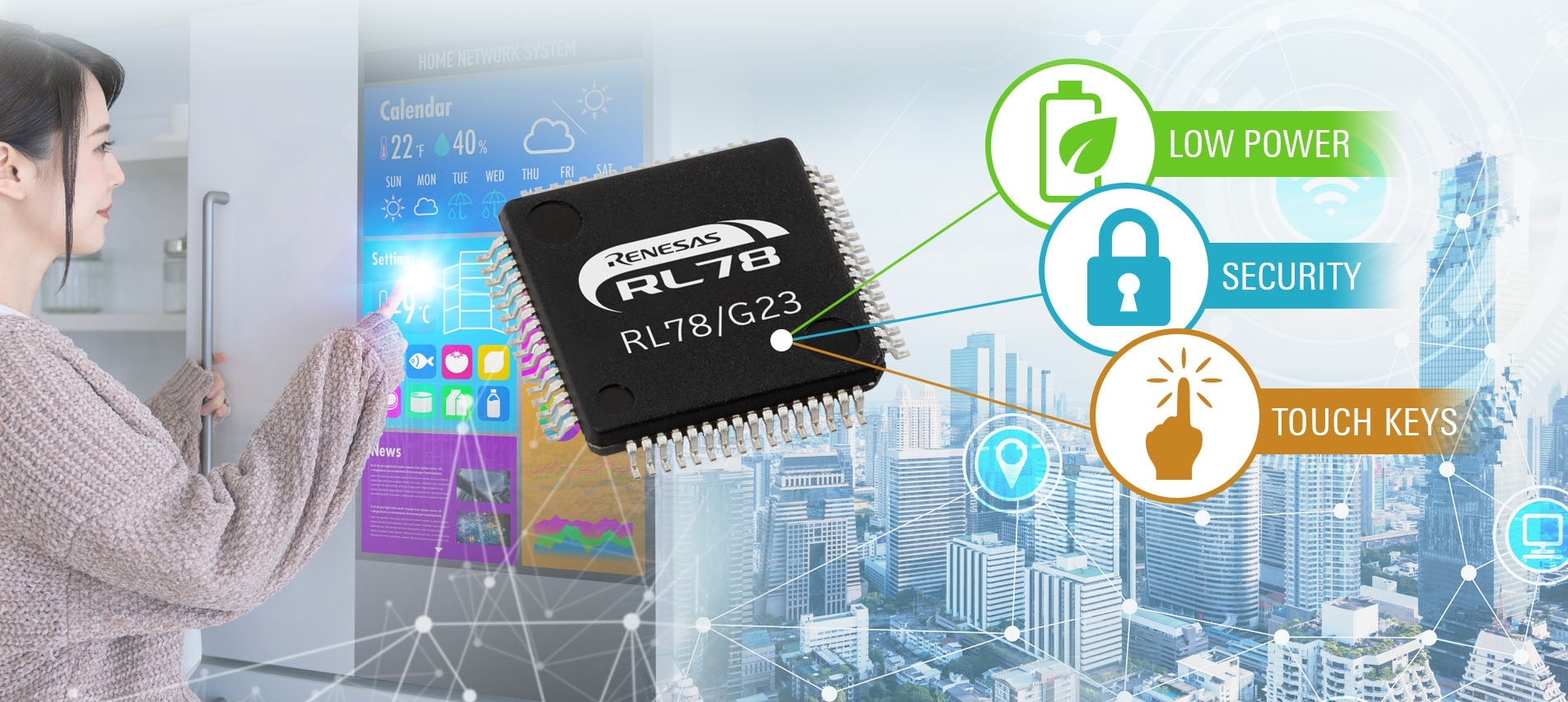 Le Japonais diminue de 30% la consommation de ses microcontrôleurs 16 bits RL78 grâce à un nouveau process et à un séquenceur de mode veille.