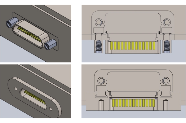 La bride du connecteur Micro-D 83513/10 présente une épaisseur de 0,08 pouces. Cette finesse relative requiert l’utilisation d’une soudure bout à bout ou sur chanfrein. Dans un souci de renforcement, les surfaces sont généralement préparées par chanfreinage afin de garantir un niveau approprié de pénétration du joint. Les brides Micro-D standard n‘étant pas chanfreinées de série, une intervention est requise pour biseauter la bride. Une solution plus simple consiste à modifier l’épaisseur de la bride pour permettre à l’assembleur d’utiliser une soudure d’angle et de s’affranchir du chanfreinage de la bride du connecteur. Le Micro-D standard présente aussi un risque de fuite au niveau de l’élément de fixation. Pour éliminer ce risque, la solution la plus simple à fabriquer sera un corps de connecteur sur mesure qui scelle le passage du jackpost et est doté d’une bride adaptée au soudage d’angle.