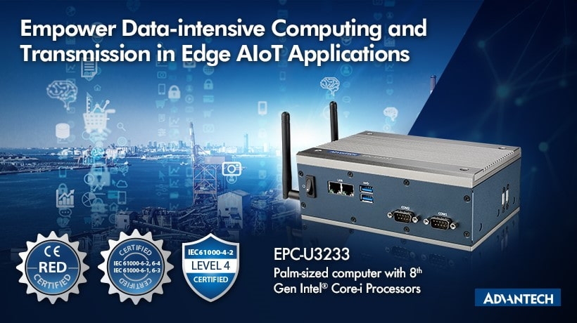 Référencé EPC-U3233, le dernier PC embarqué d’Advantech repose sur des processeurs Intel Core-i de 8e génération fonctionnant sans ventilateur. Il dispose entre autres de ports USB 3.2 et 2.0, HDMI et LAN et d’extensions M.2, le tout dans un boîtier compact de 185x120x65mm conforme aux normes industrielles IEC 61000-6-2 et 6-4. Compatible Windows 10 et Linux Ubuntu, l’EPC-U3233 offre selon le Taïwanais un regain de performances de 50% par rapport à ses modèles précédents.