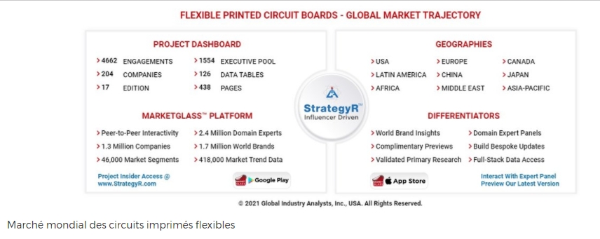 Le cabinet d’études Global Industry Analysts a publié un rapport intitulé “Cartes de circuits imprimés flexibles – Trajectoire et analyse du marché mondial”. Il estime que ce marché représentera 19,5Md$ en 2026 avec un taux annuel de croissance composé (TCAC) de 8,9%.