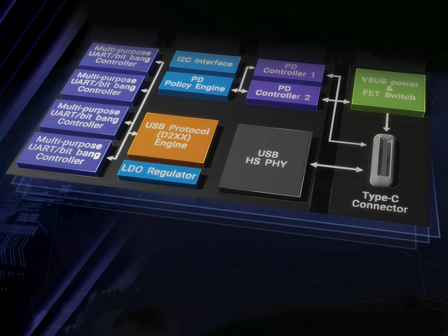 FTDI Chip complète son catalogue de circuits d’alimentation USB Power Delivery avec les modèles monocanaux FT23xHP, qui viennent s’ajouter aux FT223xHP (deux canaux) et FT423xHP (quatre canaux) lancés l’an passé. Sertis en boîtier QFN, les FT23xHP peuvent véhiculer jusqu’à 100W en accord avec la révision 3.0 de la spécification USB PD, tout en transférant un maximum de 480Mbit/s de données. Parmi les options d’entrées-sorties intégrées figurent RS232, RS422, RS485, Jtag, I²C et SPI. Sont visés les appareils électroménagers, les scanners de code-barres, les périphériques informatiques, l’outillage électrique, l’éclairage ou encore les équipements de test et d’automatisme industriel.