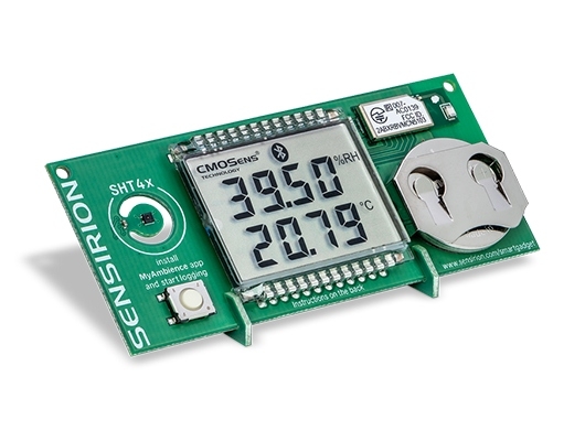 Sensirion propose via son réseaux de distribution une carte de référence baptisée SHT4x Smart Gadget, centrée autour de ses capteurs d’humidité et de température SHT4x. La carte comprend un écran LCD, un bouton poussoir, un module de communication sans fil Bluetooth Low Energy et une batterie.