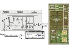 Le KAIST (Korea Advanced Institute of Science and Technology) a ainsi développé l’un des tous premiers frontaux RF conformes aux desiderata de l’IEEE 802.15.6. Il utilise pour cela l’une des trois couches physiques proposées pour ce standard à venir, celle qui exploite la bande BCC (Body Channel Communication) entre 40 et 120 MHz et combine une consommation d’énergie inférieure aux deux autres PHY proposés (bande étroite et ultra-large bande à des fréquences bien supérieures) et des pertes réduites lors de la transmission à travers le corps humain. Adaptation de résonance, déclenchement contextuel, pilote et amplificateur faible bruit différentiels et reconfigurables, démodulateur à réutilisation de courant et oscillateur local à correction de cycle sont autant de techniques réduisant ici la consommation. In fine, celle-ci ne dépasse pas 0,24 nJ/bit pour un circuit en Cmos 180 nm mesurant 2,5 x 5 mm. La modulation FSK permet de véhiculer 10 kbit/s à 10 Mbit/s.