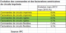 En mars dernier, les fabricants nord-américains de circuits imprimés ont facturé 5,4 % de plus qu’en mars 2010. Mais ils ont reçu 9,9 % de commandes en moins.