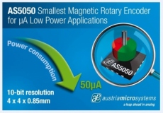 Série AS5050 d’austriamicrosystems Cet encodeur magnétique rotationnel 10 bits présente, selon le fabricant, la plus petite consommation du marché.