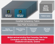 Le fabricant compte également sur un nouveau cœur, l’e6500, dont la principale qualité réside dans la nature multitâche. Si les QorIQ AMP comptent 1 à 12 cœurs physiques, ce sont en effet jusqu’à 24 cœurs virtuels qui sont vus par le logiciel, soit trois fois plus que pour la précédente génération représentée par le P4080 à 8 cœurs. Freescale a en outre ressuscité le jeu d’instructions Altivec, qui date de l’époque des PowerPC et qui accélère le traitement vectoriel. Le premier membre de cette famille QorIQ AMP, le T4240 (24 cœurs), sera échantillonné au premier trimestre 2012.